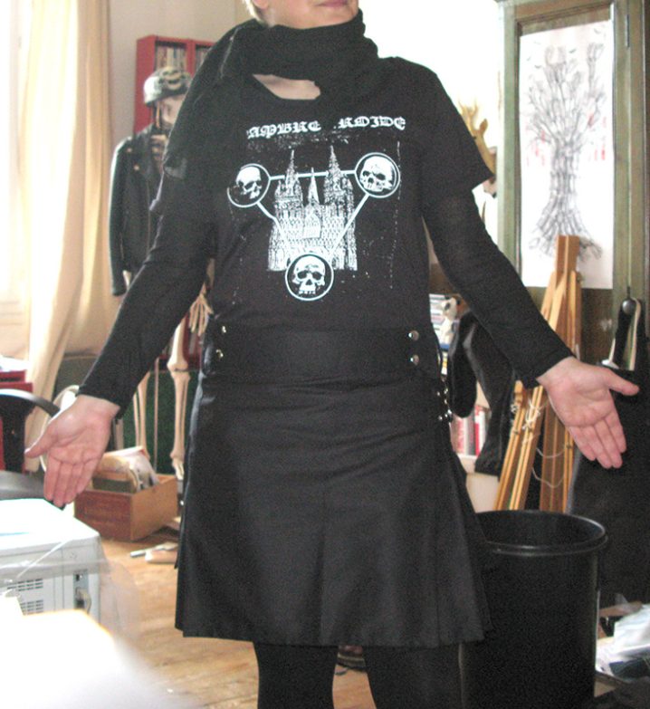 on notera le choix des crânes sur le t.shirt, qui viendront compléter à merveille les crânes sur les bras, les patchs et les gravures, le noir est encore tendance cette saison, à vrai dire on se demande quand ça le sera plus. Encore une belle saison qui s’annonce.