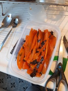 il vous reste 3 carottes de votre précédent test pour cause de plat trop petit ?  l’occasion de faire une autre version encore du fauxmon sumé (le nom a été déposé à l’INPI)