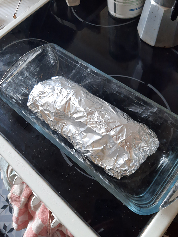 et mettre le reste de gros sel par dessus. si vous avez 4 grosses carottes, vous avez donc pigé que votre plat doit être quand même assez MASSIF. donc moi j’ai tenté avec deux vu que j’ai qu’un plat à cake de taille pas très grande.