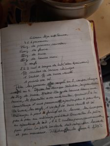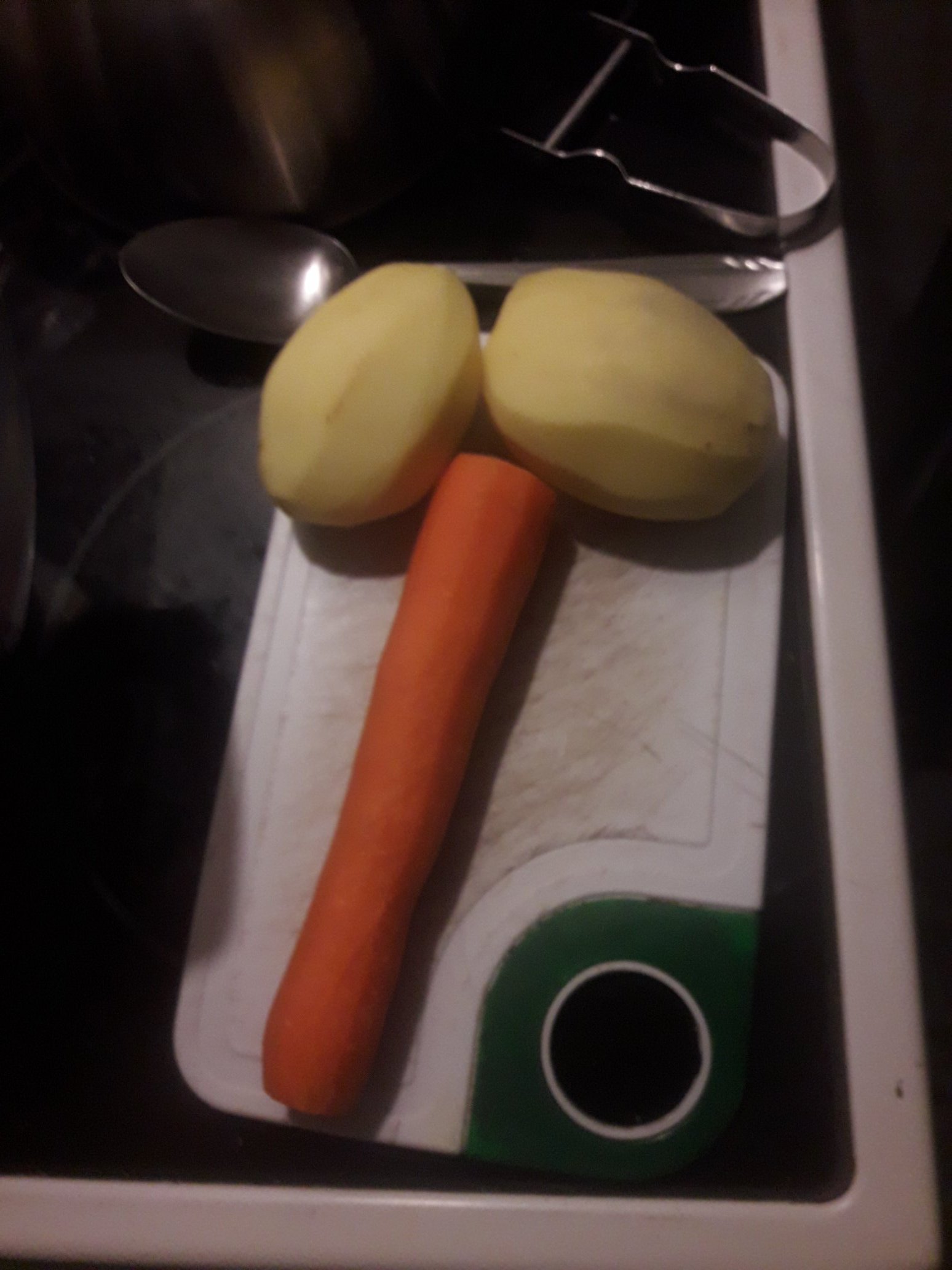 pour le ragoutoutou c’est très simple : peler des patates, peler des carottes, éplucher des oignons, couper tout à l’opinel traditionnel qui sert à couper tout ce qui doit être coupé. Mettre à fondre les oignons dans du beurre.
