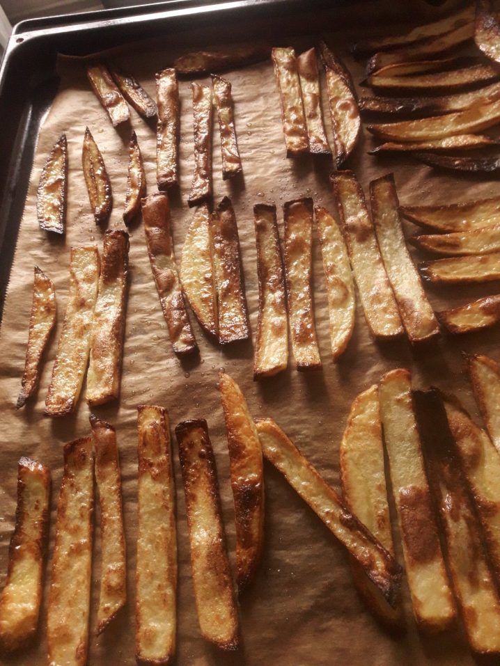 aujourd’hui je me suis demandé quoi faire à manger à part des grosses frites au four, et j’ai fait des frites au four, mais fines : la révolution.