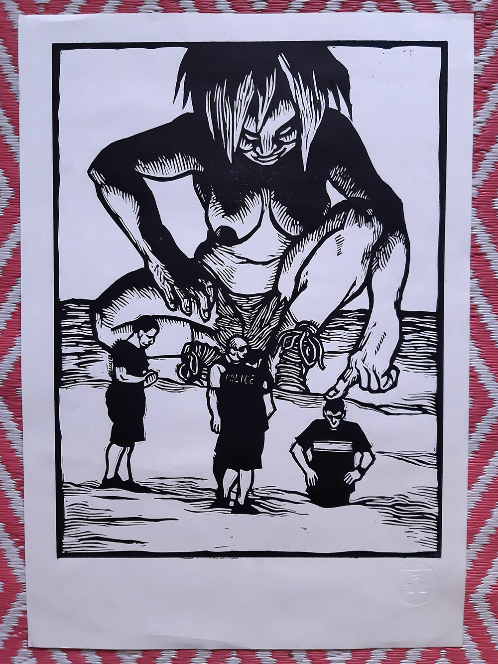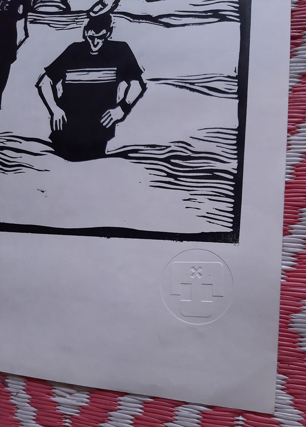 Linogravure encre taille douce sur papier buvard d’impression 35x50cm, monogramme gaufré envoi via mondial relay ou remise en main propre sur paris selon mes dispos