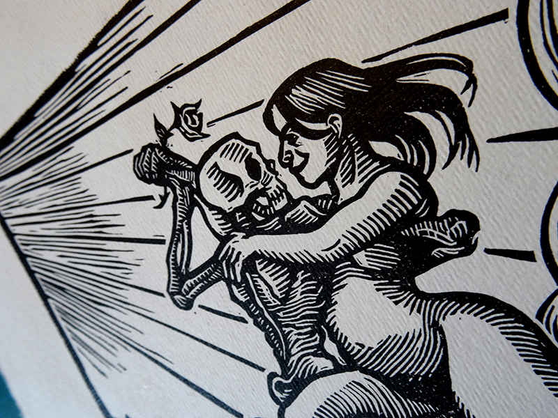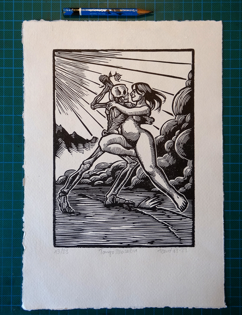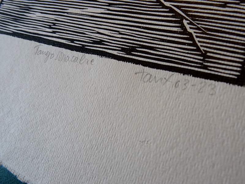 Linogravure encre typographique sur papier fait main à bords frangés. gravure 14,8x21cm papier environ A4 23 ex numérotés signés